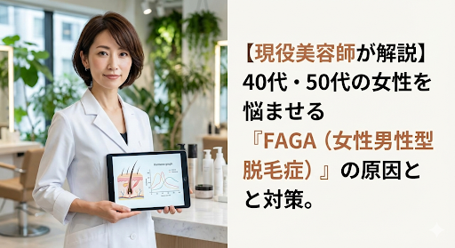 この時期の抜け毛は、ただの「疲れ」や「ストレス」ではありません。**女性ホルモンの減少による「FAGA(女性男性型脱毛症)」**という、誰にでも起こりうる変化が背景にあります。